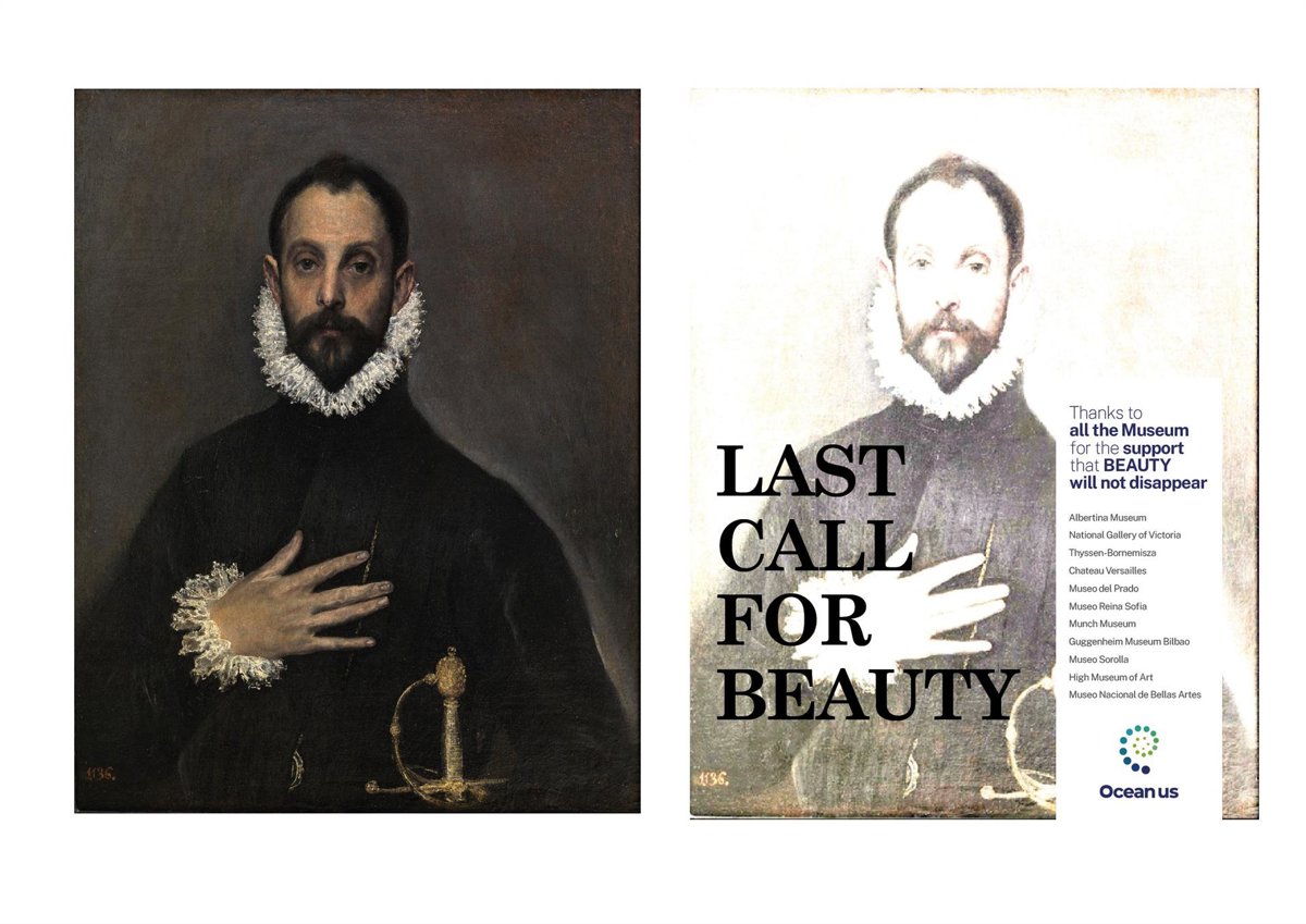 La fundación internacional Oceanus emprendió una campaña sin precedentes, "Último Llamado por la Belleza", con la finalidad de alertar sobre el grave fenómeno de blanqueamiento de los corales en los océanos del mundo. Esta iniciativa busca sensibilizar al público global mediante la decoloración digital de pinturas famosas en varios de los museos más renombrados a nivel internacional, representando así la alarmante pérdida de color y vida en los ecosistemas marinos.