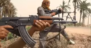 Archivo - December 28, 2016 - Anbar, Anbar province, Iraq - Still image taken from an ISIS propaganda video showing the Islamic State militants firing AK-47 automatic rifles during battles in Iraq June 15, 2016 near Fallujah, Iraq.