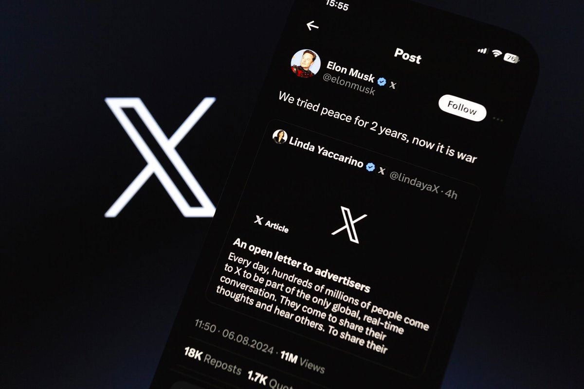 August 6, 2024, Asuncion, Paraguay: ''We tried peace for 2 years, now it is war,'' Elon Musk posted on its X account, as seen on a smartphone. X's CEO Linda Yaccarino posted ''An open letter to advertisers'' claiming that the alleged ''illegal boycott'' i - Europa Press/Contacto/Andre M. Chang
