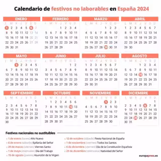 Calendario de festivos nacionales para 2024 - EUROPA PRESS