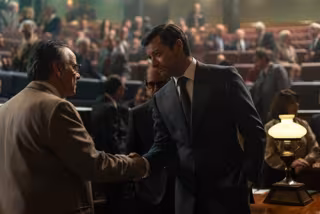 La serie narra cuando Tejero entró en el Congreso pistola en mano, solo tres hombres se mantuvieron sentados en sus asientos mientras el resto se agachaba para ponerse a salvo: Adolfo Suárez, Santiago Carrillo y Gutiérrez Mellado. - SAN SEBASTIÁN