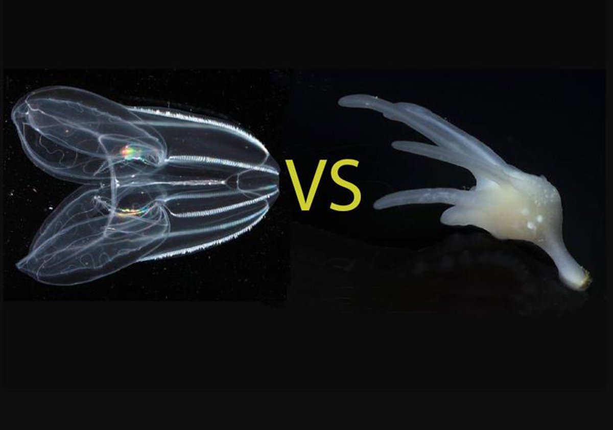 Los científicos han debatido durante mucho tiempo si las medusas peine (izquierda) o las esponjas (derecha) son el grupo hermano de todos los demás animales. - MBARI