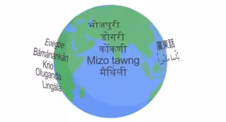Representación del planeta Tierra y algunos de los idiomas hablados en él